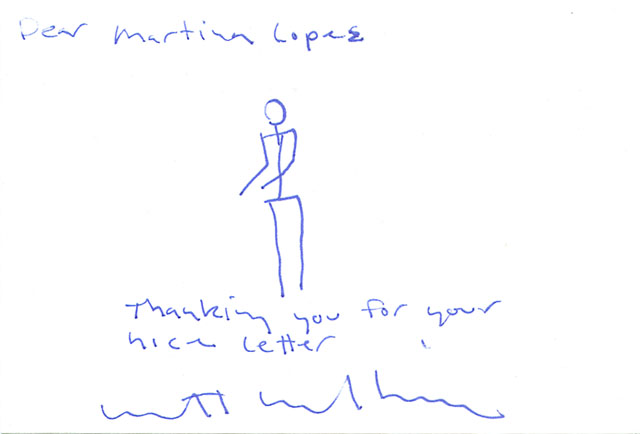 Matt Mullican Karte an Martina Lopez |