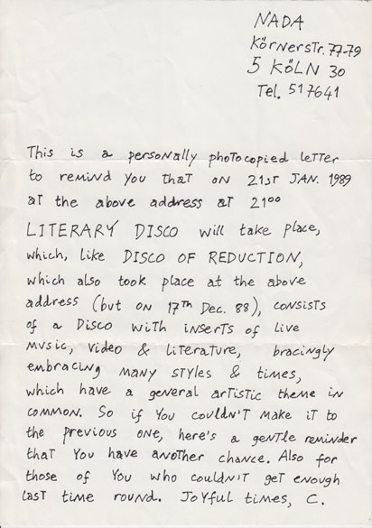 Plakat, Galerie Colon, Köln, 1989