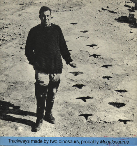 Trackways made by two dinosaurs, probably Megalosaurus.