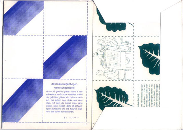 Takako Saito Blaues Regenbogen-Wein-Schachspiel / Eß-Schachspiel, Edition Hundertmark, Köln, 1982 |