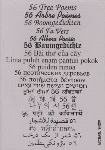 Michael Snow 56 Baumgedichte Auflage 1000