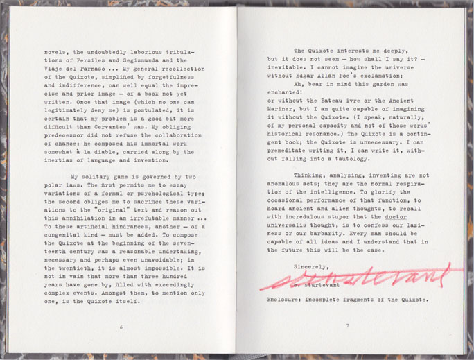 Sturtevant, Author of the Quixote 43 Seiten, 17,5 x 11,5 cm, VA mit roter Signatur auf Seite 7