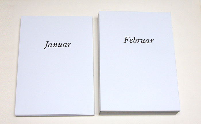 12 Mappen je ca. 50 Blättern, Tintenstrahl auf Karton.