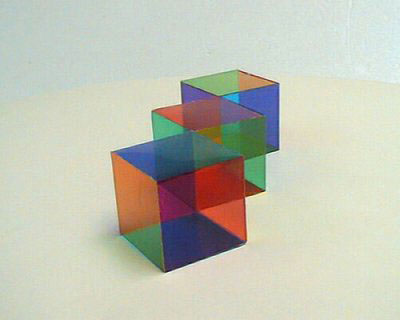 1.) Die sich gegenüber liegenden Flächen zeigen je eine Grundfarbe