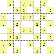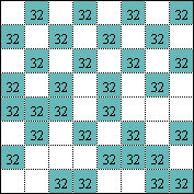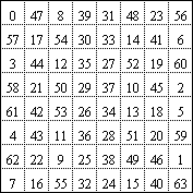 vierundsechzig Zahlenquadrate mit Farbentsprechung